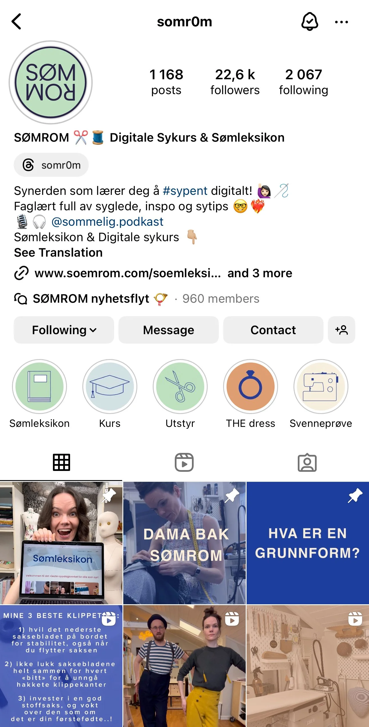 & klikk på “SØMROM nyhetsflyt” i bio’en øverst i profilen vår.